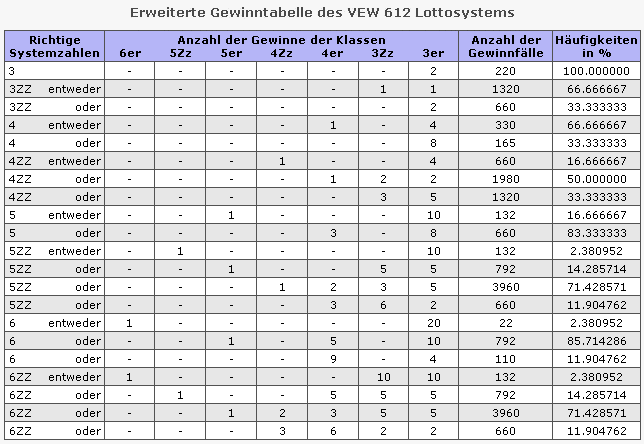 [1] VEW 612 Lottosystem, Gewinntabelle - Lottosysteme [2] Lotto 6 aus 49 und die Strategie für überdurchschnittliche Lottoquoten [3] Aktuelle Zahlen und Quoten [4] Designs [5] Lotto Star - Infos